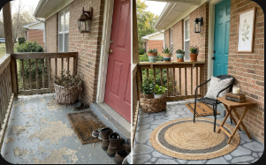The result? A porch that looks like you spent $1,000 or more. Clean floors, a bold door, fresh plants, comfortable seating, and thoughtful details that make the entire front of your home look completely different.