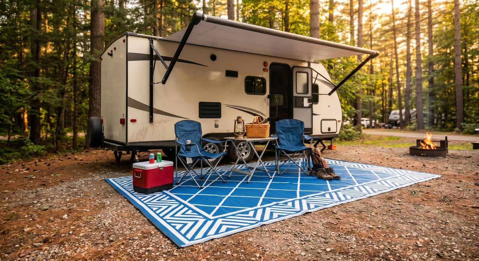 The Amazon bestseller in the outdoor rug category is the GENIMO reversible plastic straw rug, which has sold hundreds of thousands of units because it solves a specific problem brilliantly: portable, affordable, easy-to-clean outdoor flooring for RVs, camping, temporary patio setups, and garage spaces.The reversible design effectively gives you two rugs in one — use one side until it shows wear, then flip to the fresh side. The plastic straw construction is completely waterproof, dries in minutes after a rain, and folds up small enough to fit in a storage bin. Weight is under 10 pounds even in large sizes.