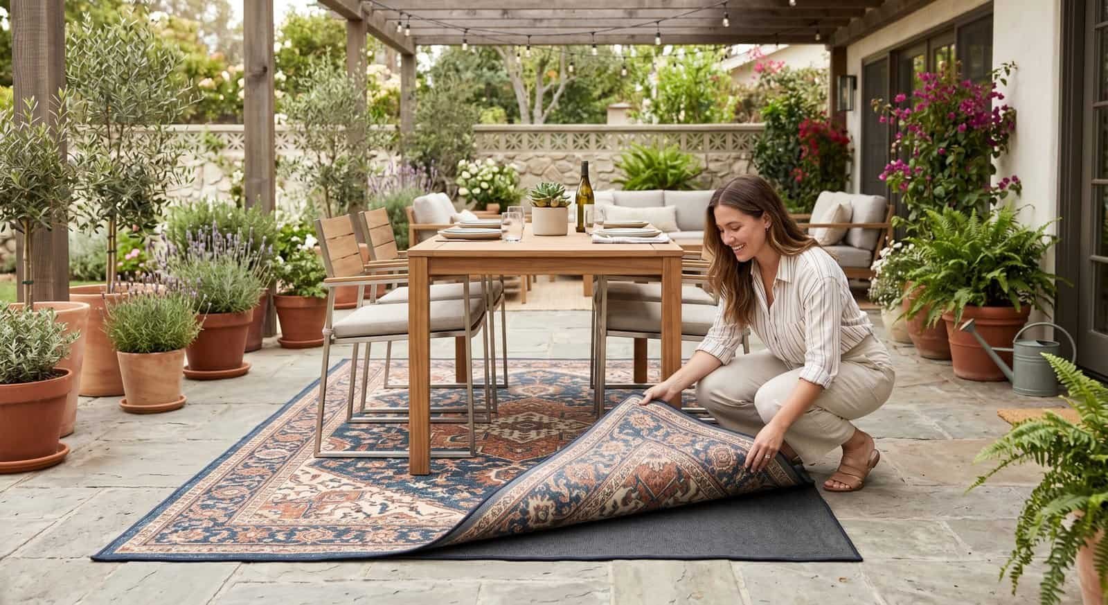 The difference between a patio that feels like a room and a patio that feels like a concrete pad is almost always the rug. That one piece of well-chosen flooring defines the space, grounds the furniture, adds color and pattern, and tells everyone who sees it that this is a considered, intentional outdoor living area rather than just the place where you store the grill.