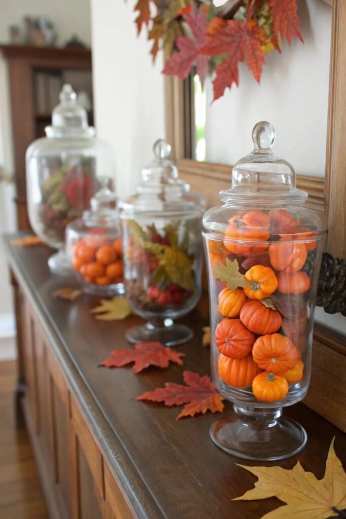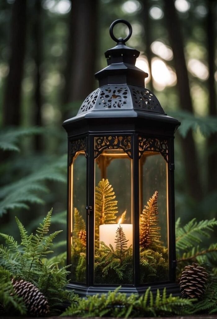 Create mini lanterns filled with moss and mini pumpkins or sparkles.