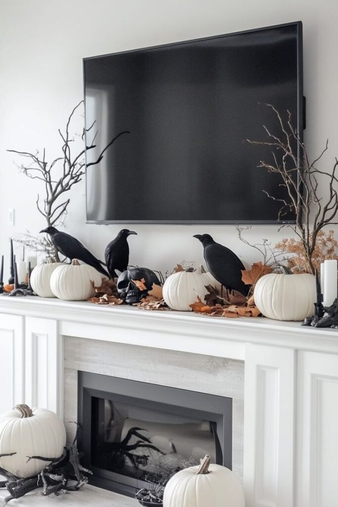 Start with neutral tones like ivory, cream, or taupe. Add a few white pumpkins (real or faux) in different sizes for a calm, clean vibe.