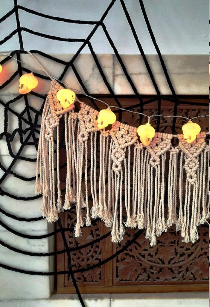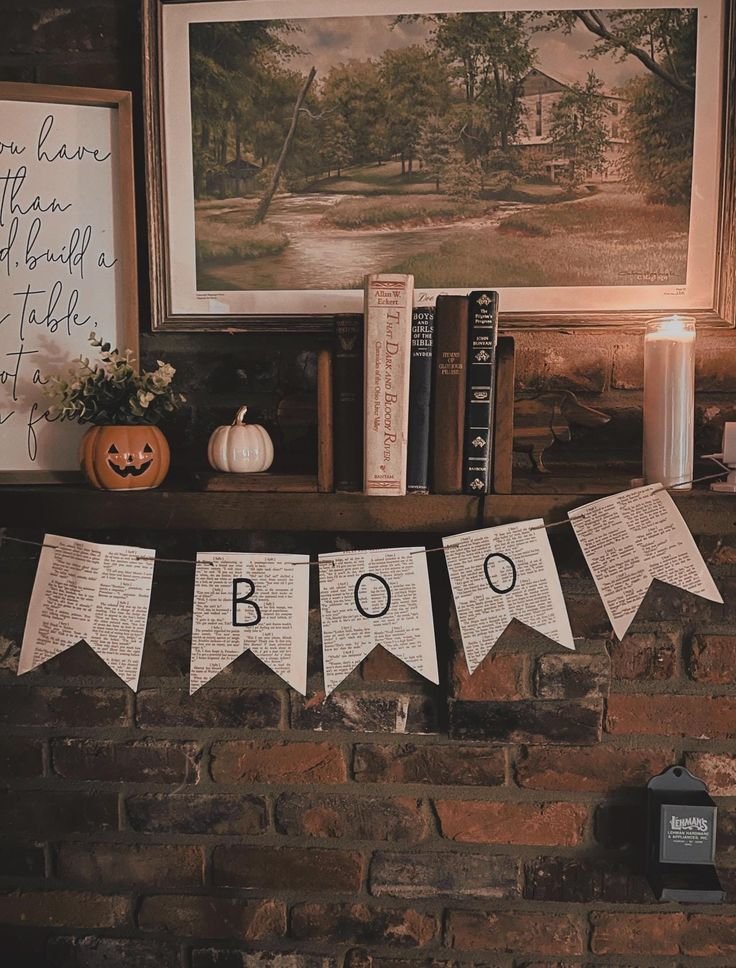 Create a DIY banner saying “Cozy Halloween” or “October Dreams.”