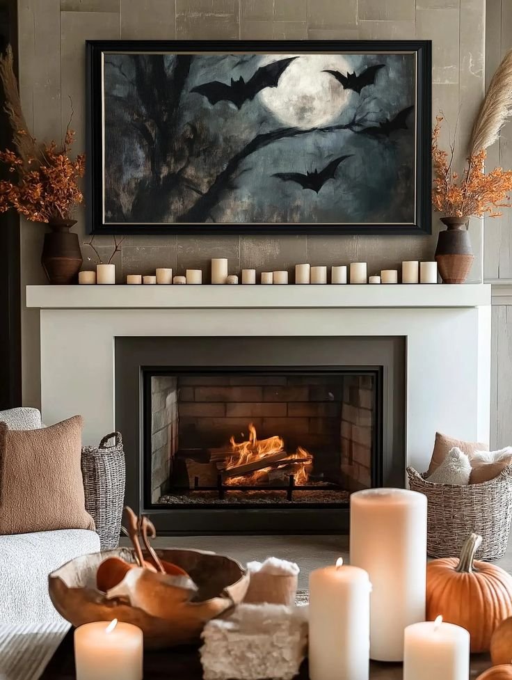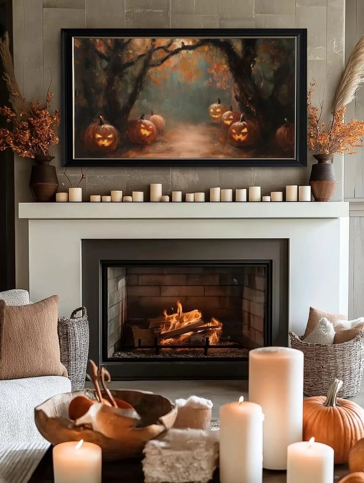 You don’t need over-the-top haunted decor to celebrate Halloween. Instead, cozy mantle decor creates a comforting ambiance with subtle spooky touches and warm autumn energy. Choose textures that invite touch, lights that glow softly, and elements that make you smile.