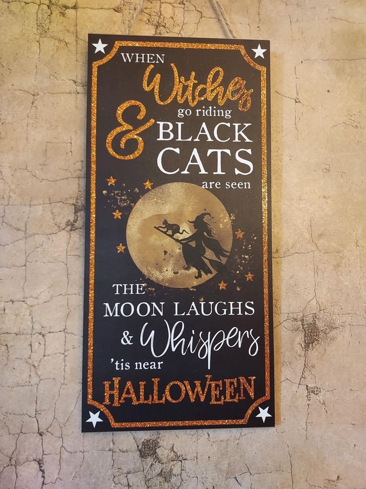 Mini wooden signs with hand-lettered phrases like “Harvest Magic” or “Witch’s Cabin” give personality.