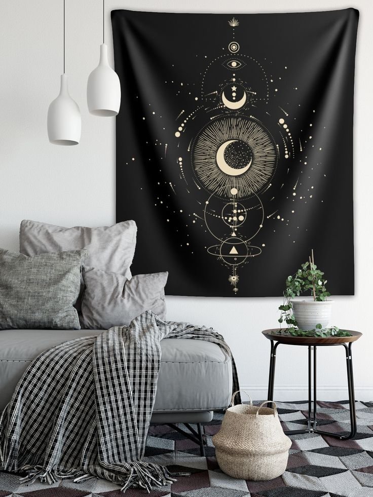 Hang tapestries in rich, dark hues with forest, raven, or moon motifs. Bonus points if it looks like a scene from a forgotten myth or fairytale.
