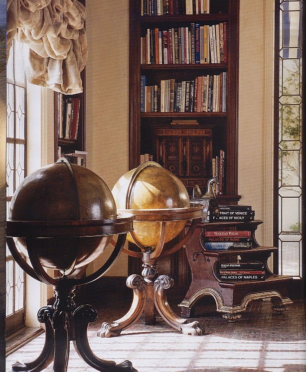 Find a muted-toned globe or an old-world map and display it near books or your writing desk.
