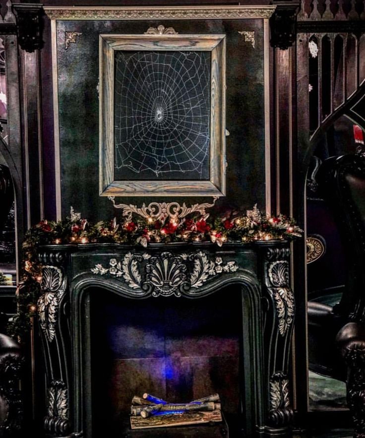 13. Faux Fireplace Mantel with Gothic Decor