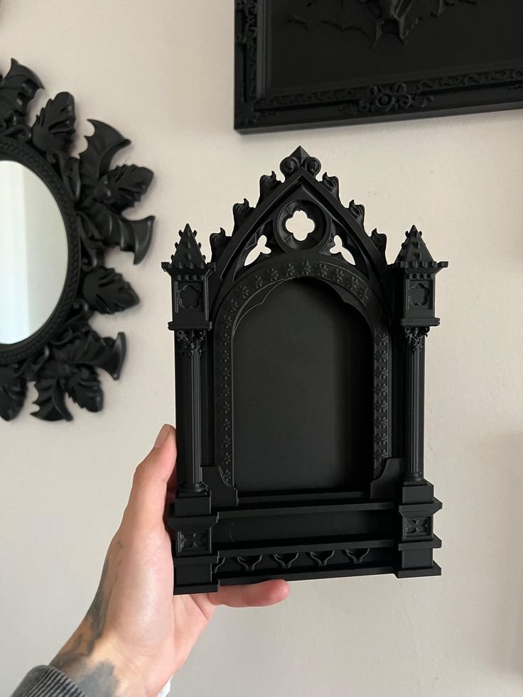 The best part? They visually expand your space without cluttering it. Gothic elegance with optical illusion magic.