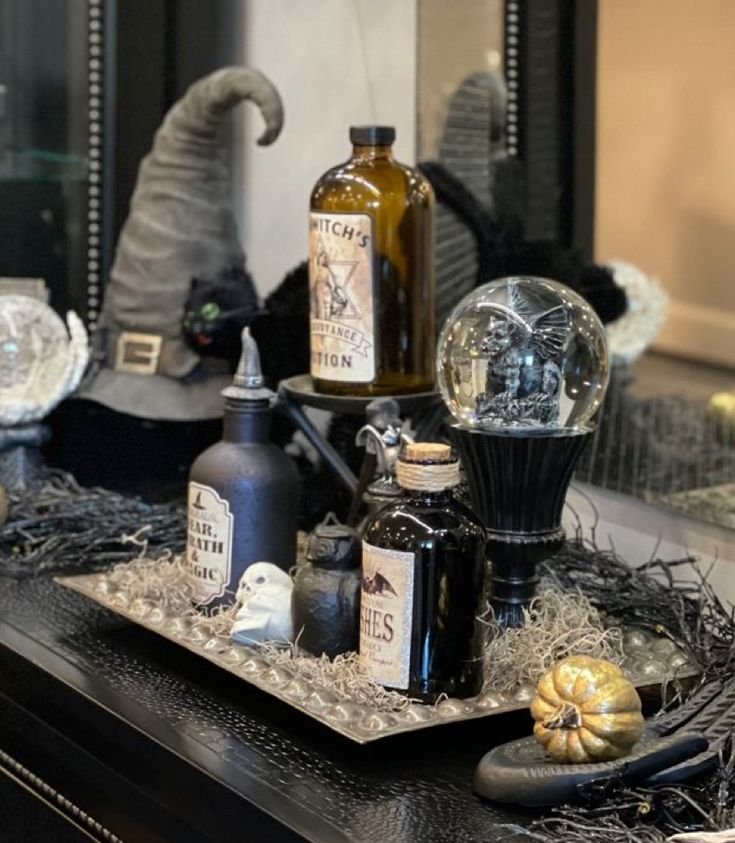 - Label them with burnt paper tags like “Witch’s Brew” or “Zombie Serum.”