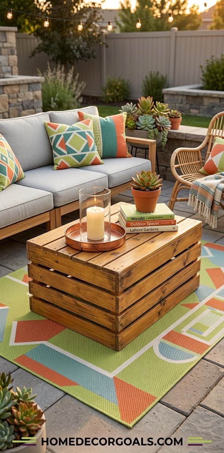 The $0 Option — Stacked Crate Table: Two wooden crates (available free from grocery stores, liquor stores, or Craigslist) stacked on top of each other and optionally stained or painted create a perfectly functional and surprisingly stylish coffee table. The open sides provide built-in storage for throw blankets, magazines, or outdoor games. Sand the rough edges, apply one coat of outdoor wood stain ($8 for a small can that covers multiple projects), and you have a table that looks intentionally rustic rather than accidentally cheap.