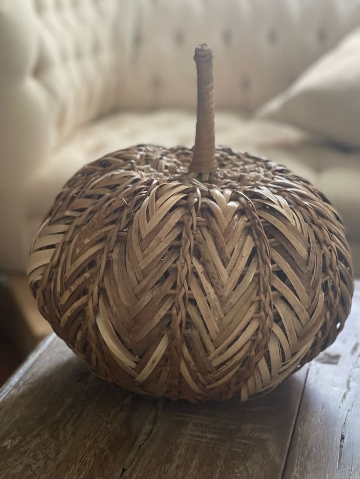 9. Woven Rattan Pumpkins for a Boho Twist