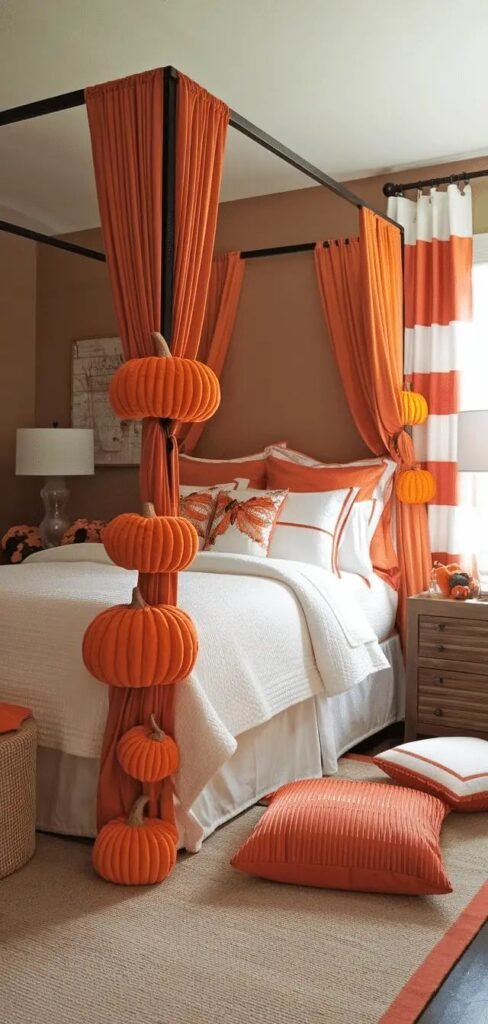 Seasonal décor doesn’t have to be limited to front porches and living rooms. Your bedroom—your personal sanctuary—deserves that cozy fall upgrade too. And what better way to do it than with pumpkins?