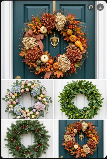 You don’t need a different wreath for every month. Four seasonal wreaths cover the entire year. A floral or greenery wreath for spring. A bright, colorful wreath or patriotic wreath for summer. A harvest or dried-leaf wreath for fall. An evergreen or pinecone wreath for winter.