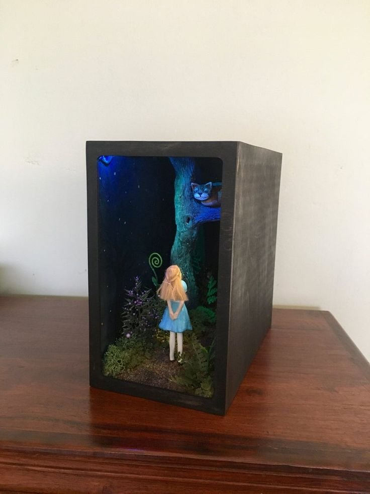 Use a shadow box to create your own Curiosity Cabinet. Fill it with small trinkets—glass vials, chess pieces, feathers, keys, or tea labels. Label each item as if it came from the Queen’s castle or a rabbit’s pocket.