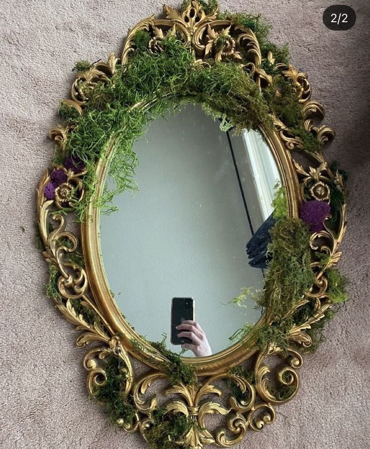 Add a small ornate mirror to your wall—oval-shaped ones with decorative frames work beautifully. It reflects light and makes your space feel bigger, all while giving you a literal “through the looking glass” moment.