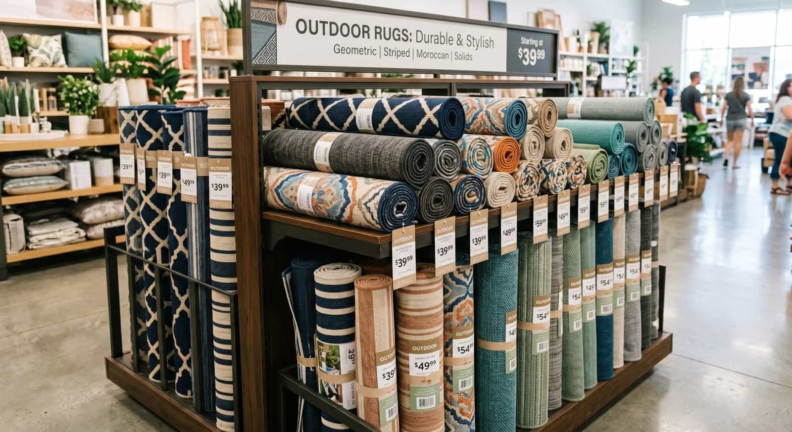 Mid-range options ($60 to $150): Wayfair, Rugs USA, and Overstock have the largest selections of outdoor rugs with more design variety. You will find unique patterns, premium materials, and bigger sizes here. Sales are frequent — sign up for email alerts and wait for 40 to 60 percent off events.