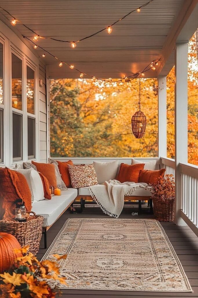 Use a large outdoor rug as base and layer a smaller jute or plaid rug on top. The visual depth feels rich and helps hide fall debris. Opt for warm tones or rustic patterns to keep that seasonal energy alive.