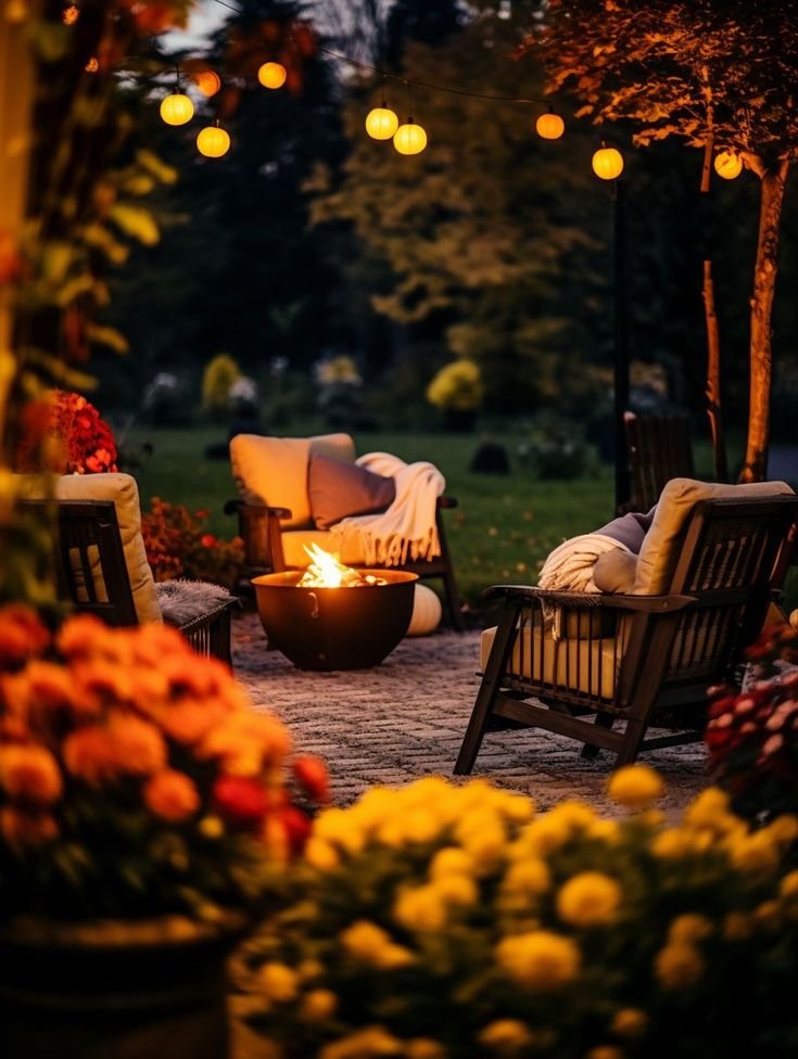Twist battery-powered string lights around planters or small shrubs. Choose warm white bulbs or autumnal yellow. They softly glow when dusk comes, adding magic without clutter.