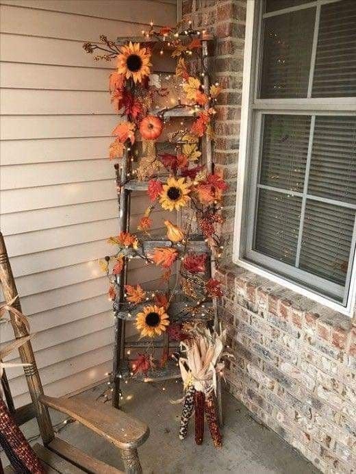 Turn it into a vertical shelf for displaying seasonal décor. Drape it with fabric, add mini pumpkins, dried floral arrangements, or candles on each rung. It’s a creative, space-saving way to decorate small gardens.