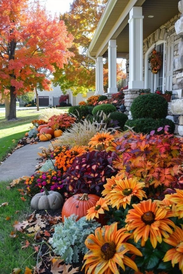 Seasonal garden flags featuring fall quotes, leaf prints, or harvest motifs add a charming detail to any space. Stick one near your walkway, mailbox, or porch steps to set the tone.