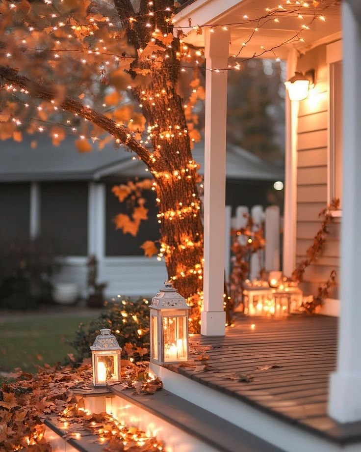 Scatter lanterns throughout your garden—on tables, along paths, or hung from tree branches. Choose styles with rustic metal finishes or wooden frames to complement fall’s natural vibe. Go for flameless LED candles if safety is a concern, especially in gardens with lots of dry leaves.