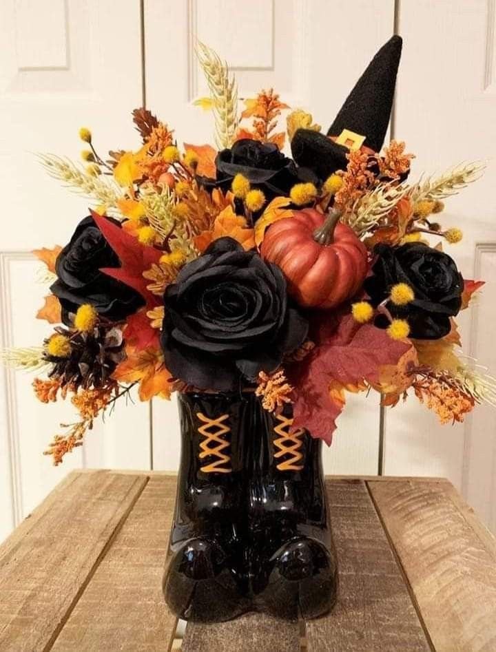 Use a sleek black vase and insert autumn branches with golden or burgundy leaves.