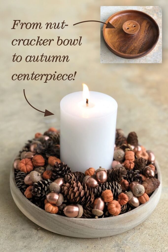Top it off with a linen runner and dried wheat bundles for an understated yet seasonal charm.