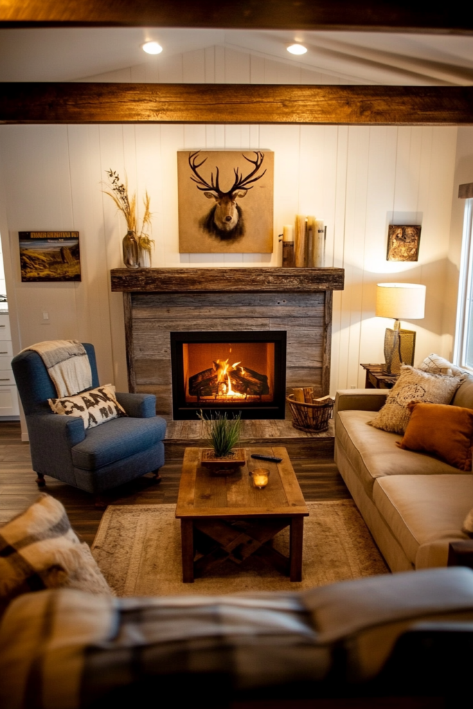 A fireplace is the ultimate cozy feature in a neutral living room. A rustic wood mantel adds warmth, while soft lighting enhances the ambiance. Even if you don’t have a real fireplace, a faux fireplace or candle arrangement can create the same effect.