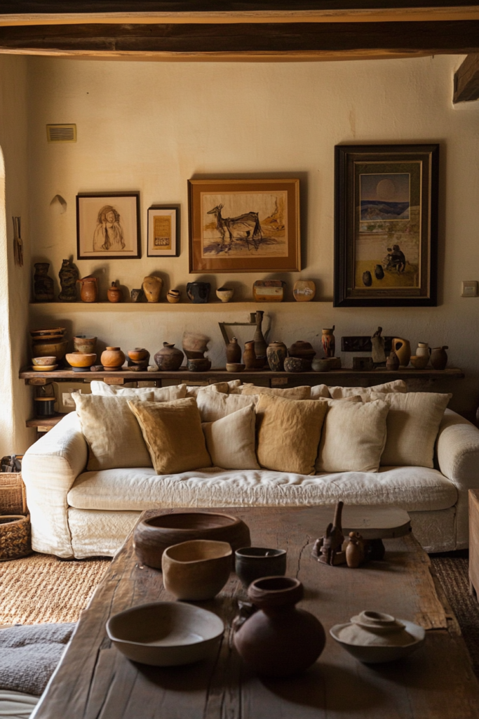 A cozy home should feel personal yet uncluttered. Family photos in matching frames, travel souvenirs, and handmade pottery add personality while maintaining harmony.