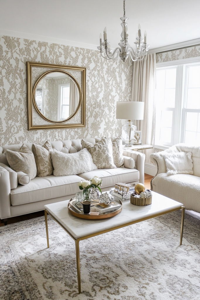 A neutral room doesn’t have to be completely plain. Subtle patterns in area rugs, throw pillows, or wallpaper add just enough detail to keep the space visually engaging.