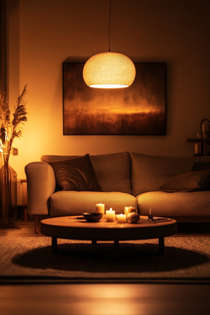 Lighting plays a huge role in setting the mood of your living room. Bright, harsh lights can make a space feel cold, while soft, layered lighting creates an inviting atmosphere. Table and floor lamps add warmth, while dimmable ceiling lights allow you to adjust brightness as needed.