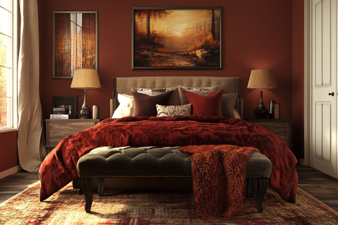 Color has a powerful effect on how a space feels. Deep reds, warm browns, and soft golds bring in a cozy atmosphere and make the room feel more inviting.