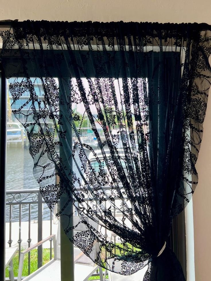 Replace regular curtains with lace panels in off-white or black. The filtered light casts beautiful, ghostly shadows during the day.
