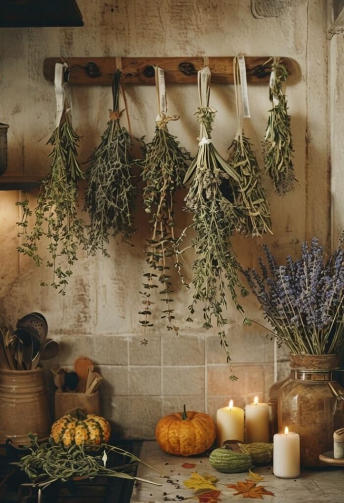 29. Dried Herb Bundles Hanging in Kitchen