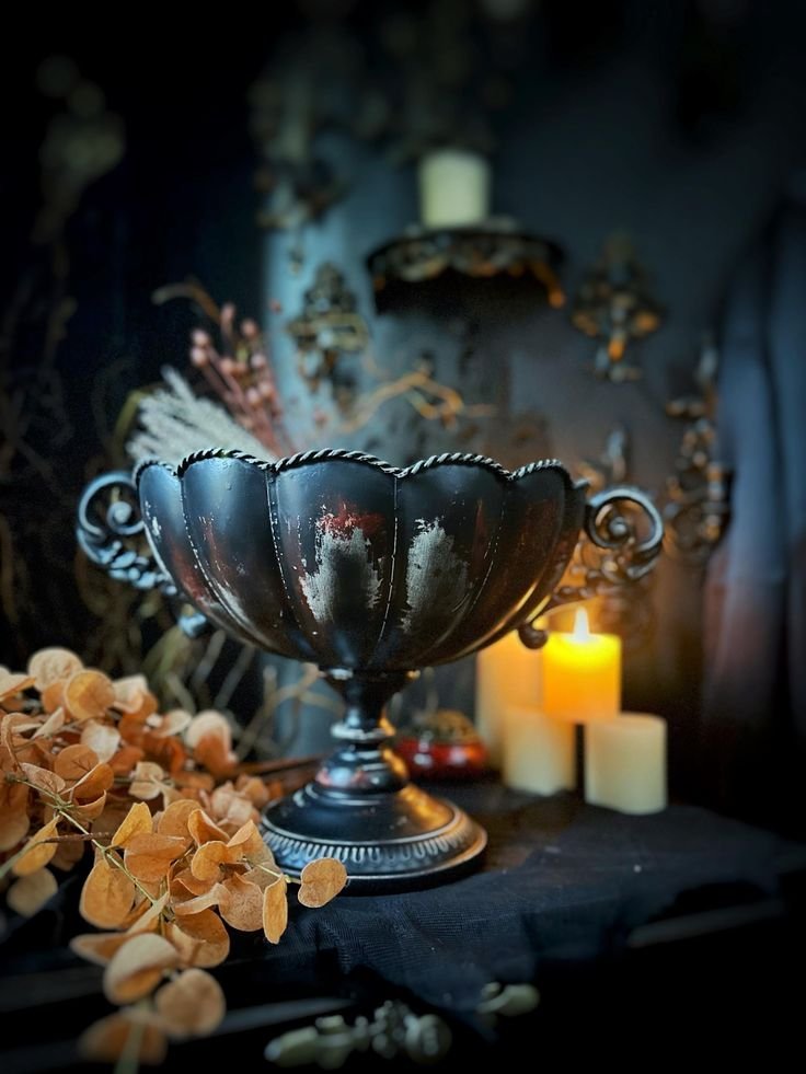 Whether you’re planning to host a spooky get-together or just want your space to look like it came straight out of a gothic novel, there’s something deeply satisfying about decorating in this theme. Think eerie candlelight, antique touches, handwritten spell notes, and a cozy, intellectual vibe that blends mystery with elegance.