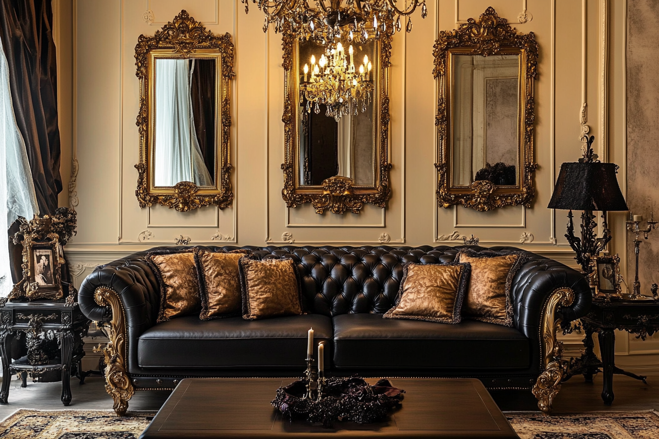 Mirrors enhance the room’s light and add an element of luxury. Gilded frames reflect opulence, while oversized mirrors make the space appear larger and more open.