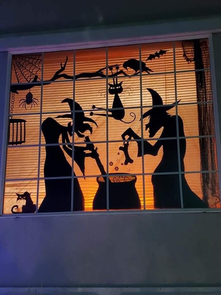 Cut out bat, cat, or witch silhouettes using black construction paper or cardstock. Tape them to your windows and backlight the area with soft lamps or string lights. They look haunting at night and mysterious during the day.