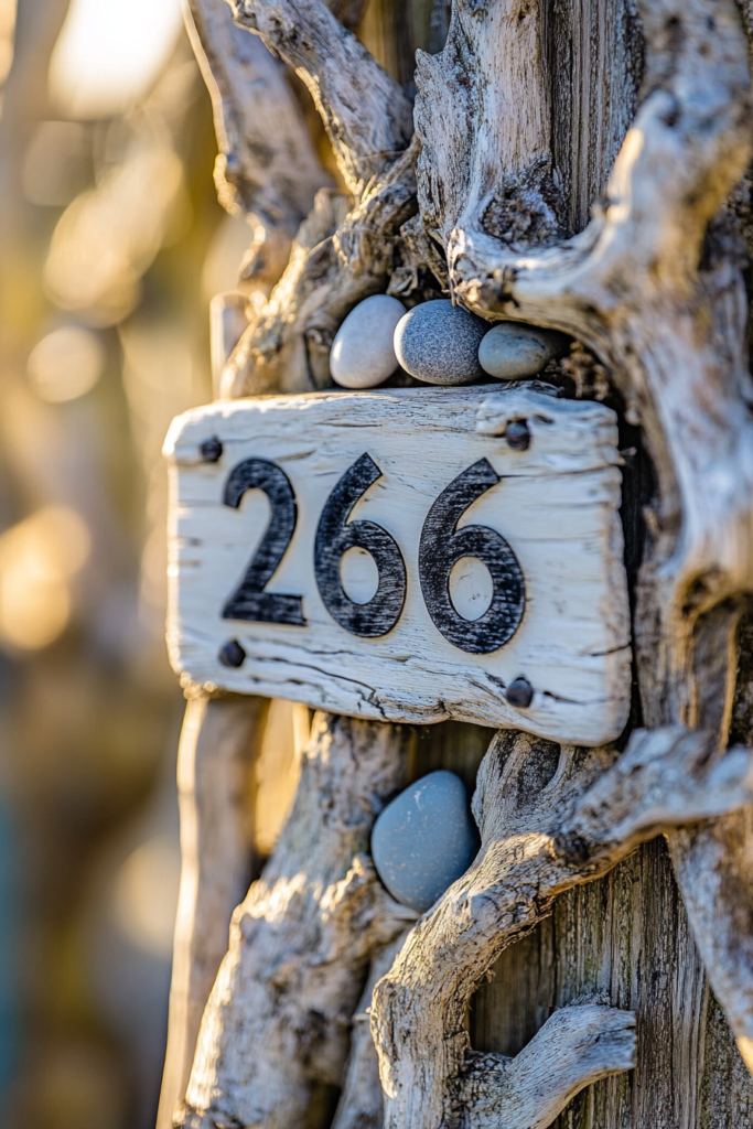 Form a base with pieces of driftwood, attach them together, and paint your numbers on. Each piece of driftwood adds its own history and character to your sign, making it truly one-of-a-kind.