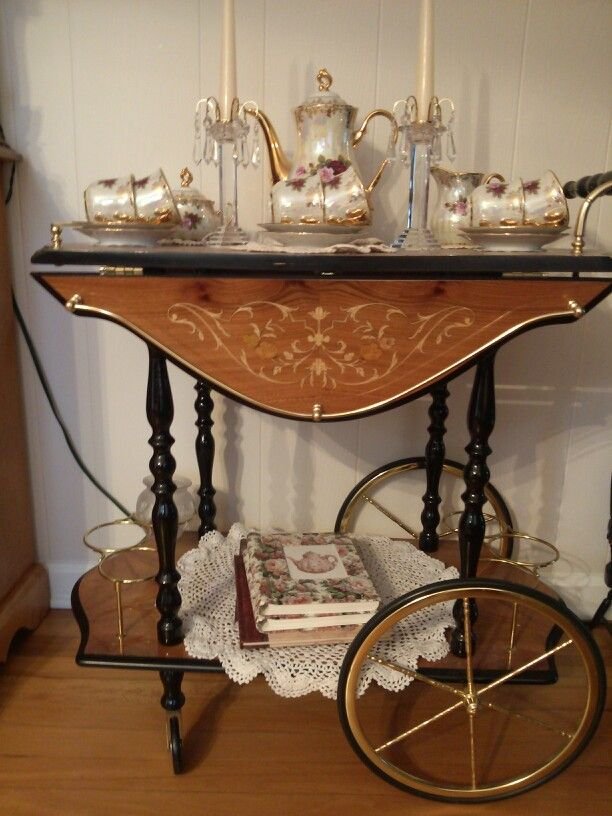 Set up a small corner with a black or brass bar cart, layered with glassware, apothecary jars, and dark teas or wines. Add a candelabra for flair.