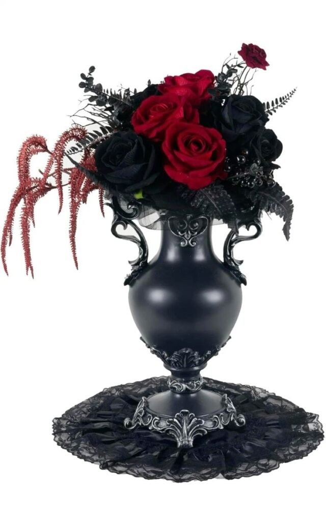 11. Gothic Urn Planters with Black Roses