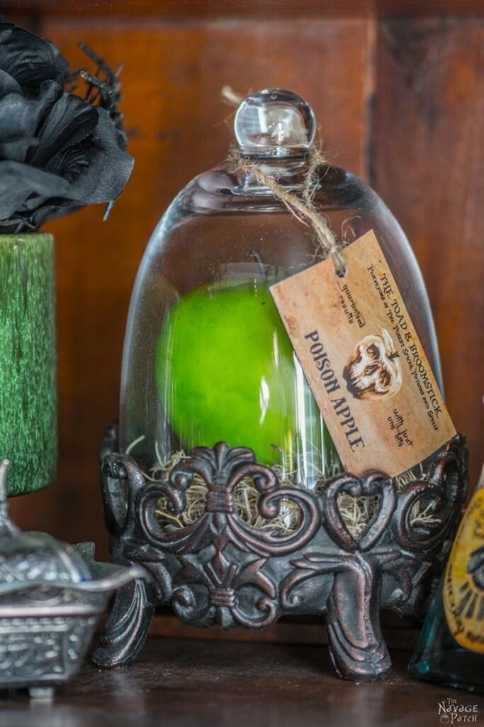 Grab old glass bottles and label them with spooky titles like “Witch’s Brew,” “Dragon Blood,” or “Moon Dust.” Fill them with colored water, glitter, or dry herbs.