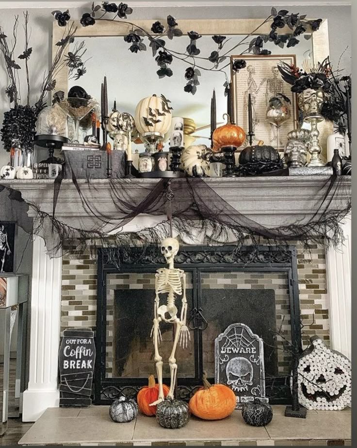 - Use ghost figurines, monochrome pumpkins, and framed Halloween prints.