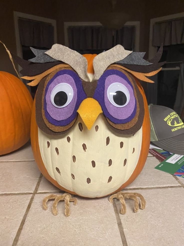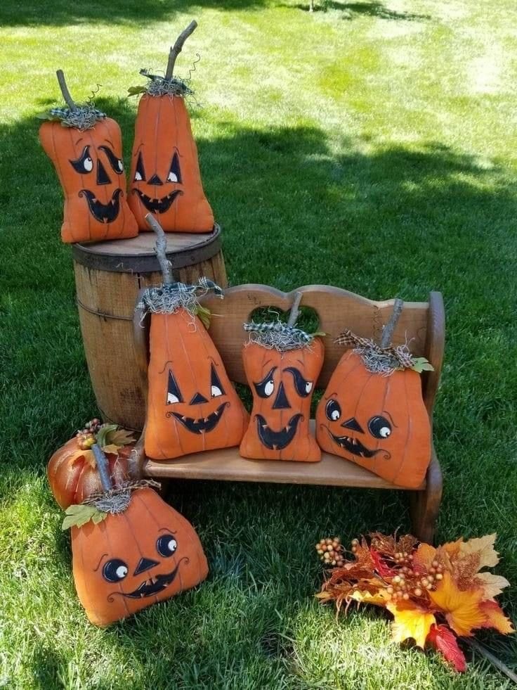 Turn pumpkins into animals—owls, cats, mice—with paint, felt ears, and button eyes. Display them in clusters near flower beds.