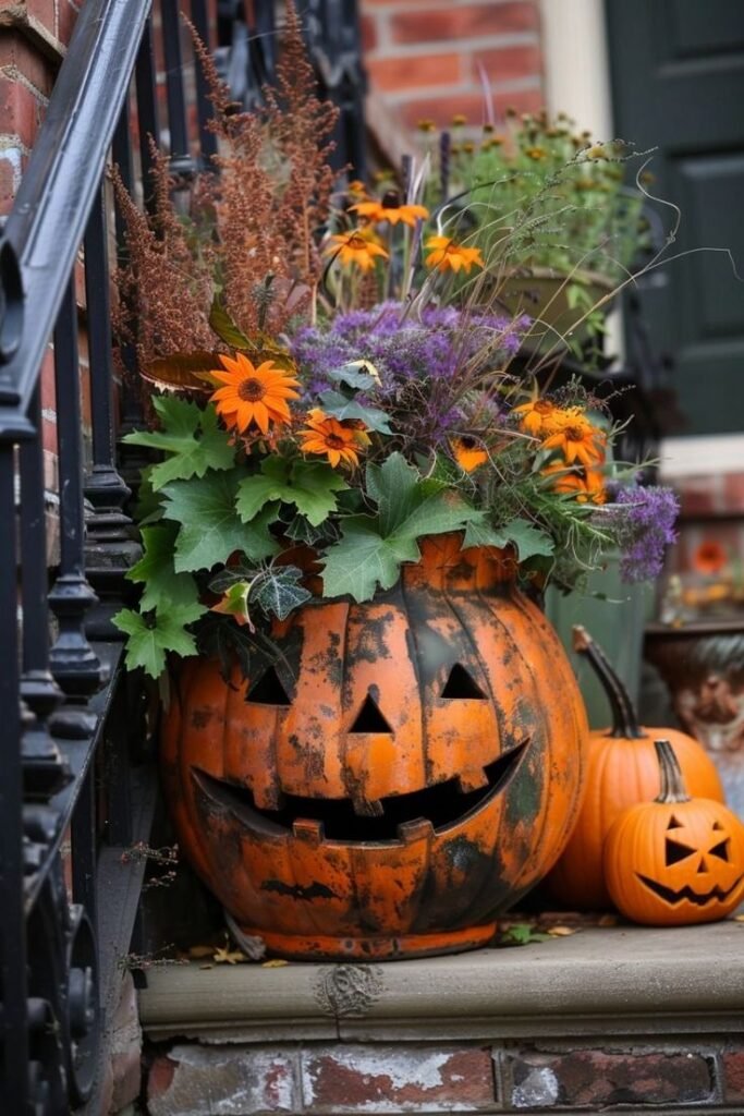 3. Pumpkin Planters for Fall Flowers