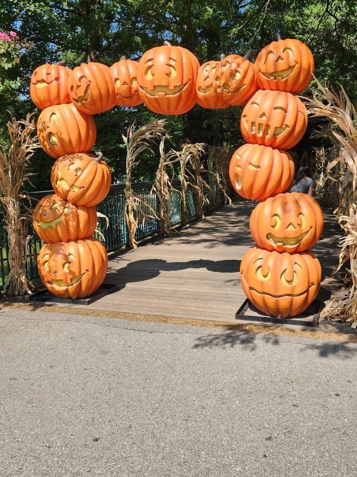 If you have a garden gate or arbor, turn it into a pumpkin archway. Use artificial pumpkins (for safety) and attach them securely using zip ties or wires.