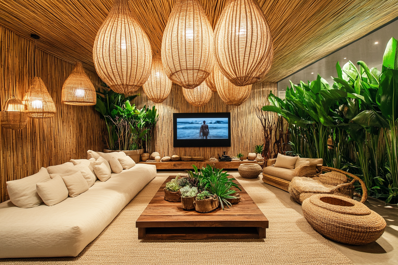 For movie lovers, a cinema-inspired media wall with vintage posters and soundproof panels creates an authentic feel. A dedicated popcorn station adds fun.