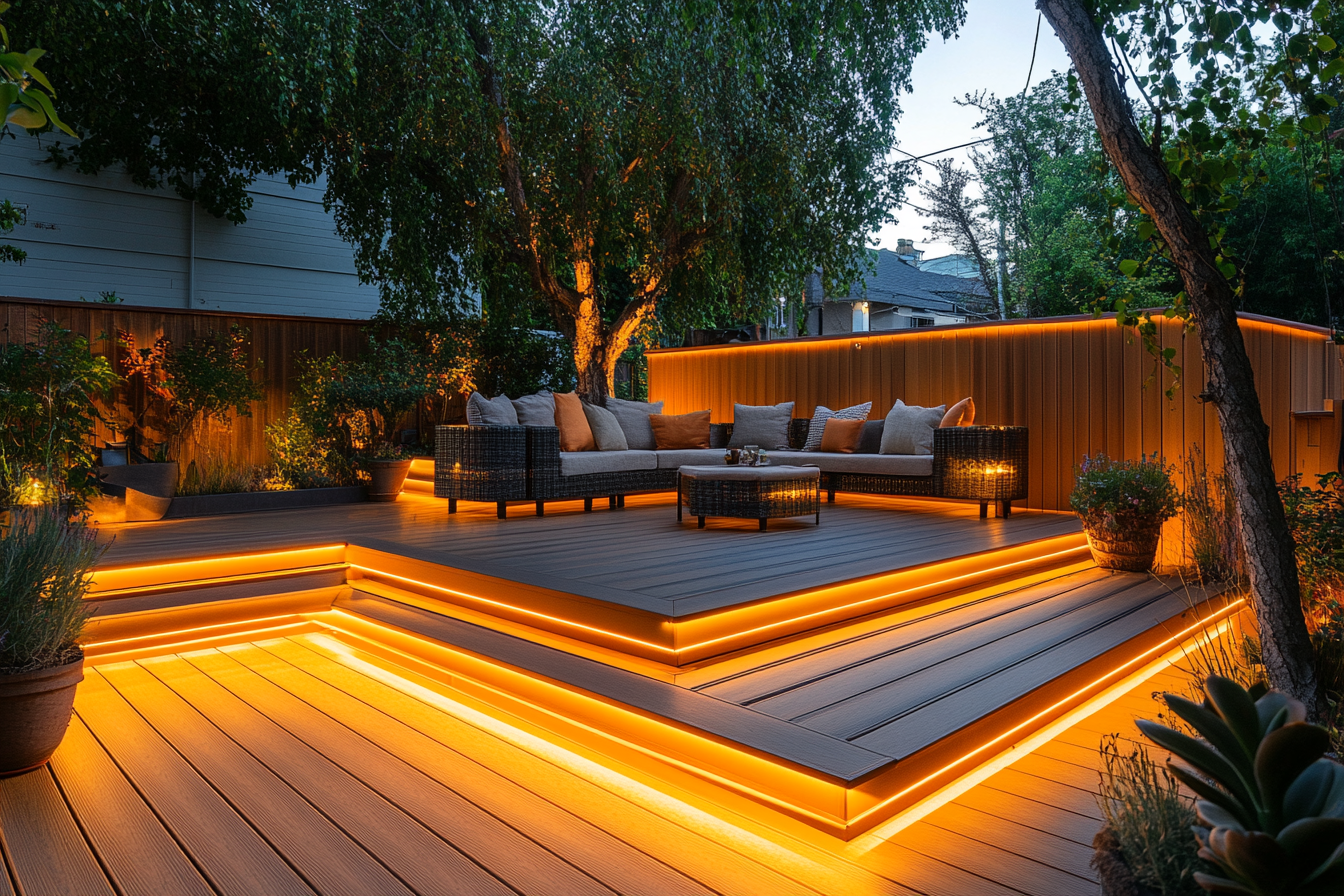 Strategic lighting placement ensures safety by illuminating stairs, railings, and seating areas. A beautifully lit deck extends your outdoor living space into the evening.