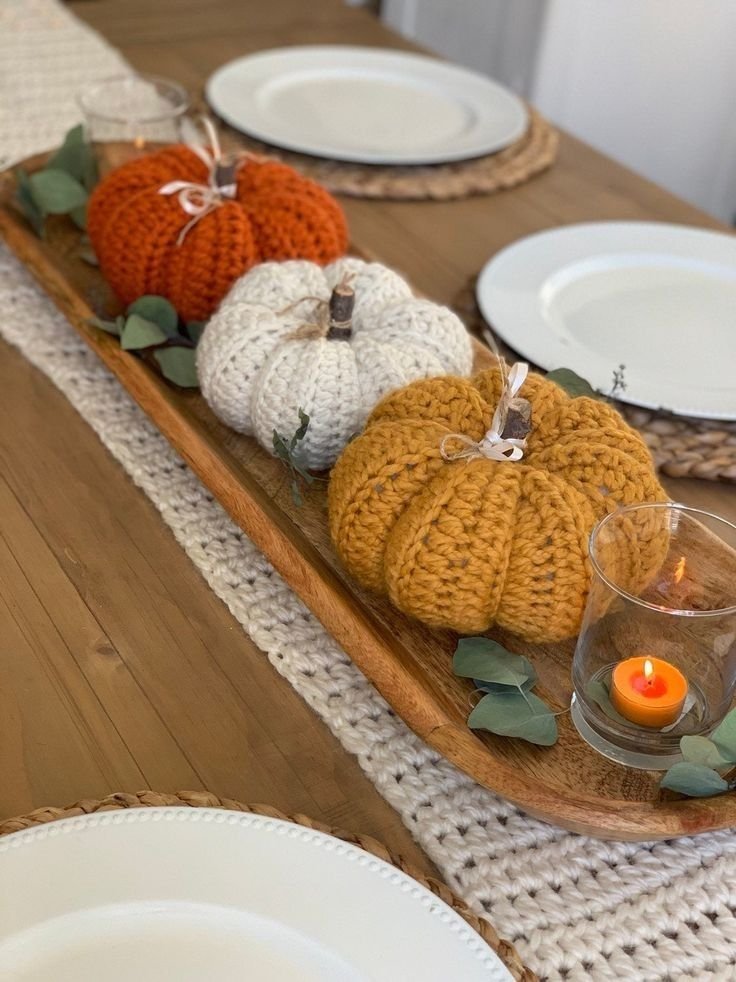 Use fabric scraps, twine, felt, or even old sweaters to create handmade pumpkins. Display them on a shelf or tray once finished. It’s both décor and a relaxing fall activity.