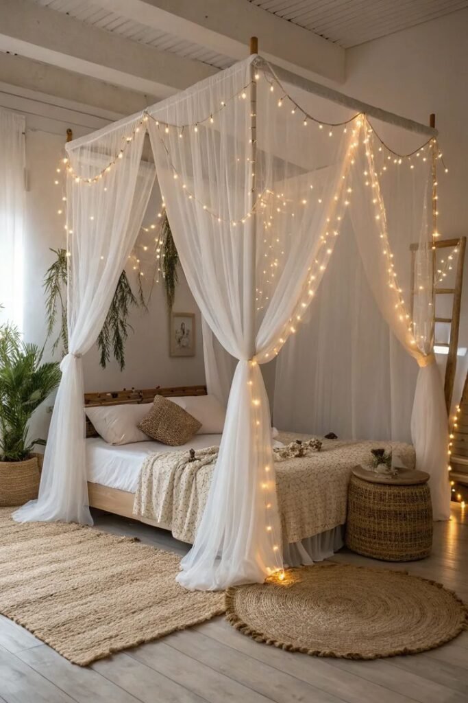 2. Linen or Muslin Canopy Over the Bed
