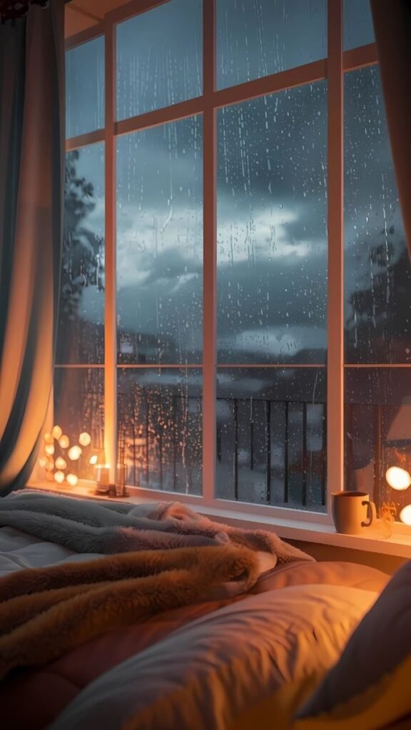 Creating a rainy night aesthetic bedroom isn’t just about looks—it’s about feeling. The warmth, the softness, the sounds, the scents… they all come together to form a space where you can slow down and reconnect with yourself.